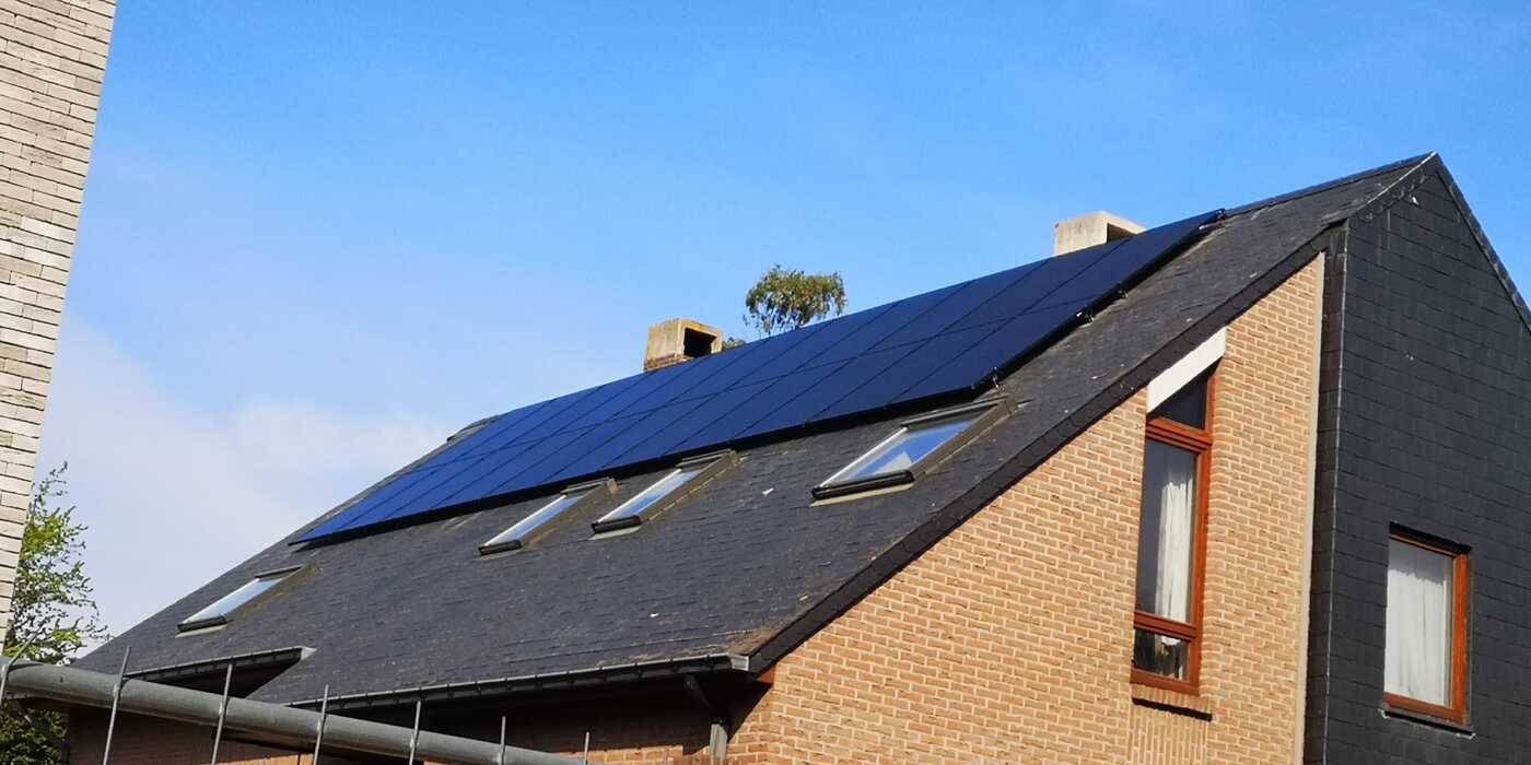 Bij deze woning en een leien dak te Meise werden 22x BELINUS zonnepanelen 375 Wp ULTRA BLACK GLAS/GLAS BIFACIAL (8.250 wpWp) met Huawei hybride omvormer SUN2000-8KTL-M1 en Huawei Luna thuisbatterij geplaatst door zonnepanelen installateur Zero Power met een geschatte jaarlijkse productiecapaciteit van 8.250 kWh groene stroom.